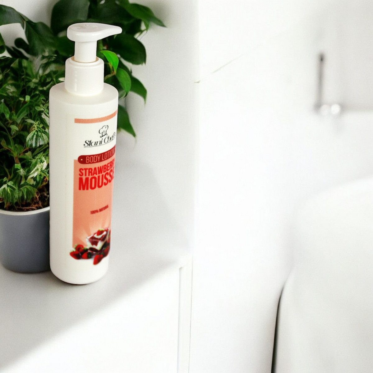 Aardbeien bodylotion Biedt een combinatie van diepe hydratatie en een verfrissende fruitige geur. Het natuurlijke aardbeienextract houdt de huid glad en gevoed, en zorgt voor elasticiteit en zachtheid. De lichte formule trekt snel in en laat geen vettig laagje achter. De frisse geur van aardbeien zorgt de hele dag voor een aangenaam gevoel en energie.