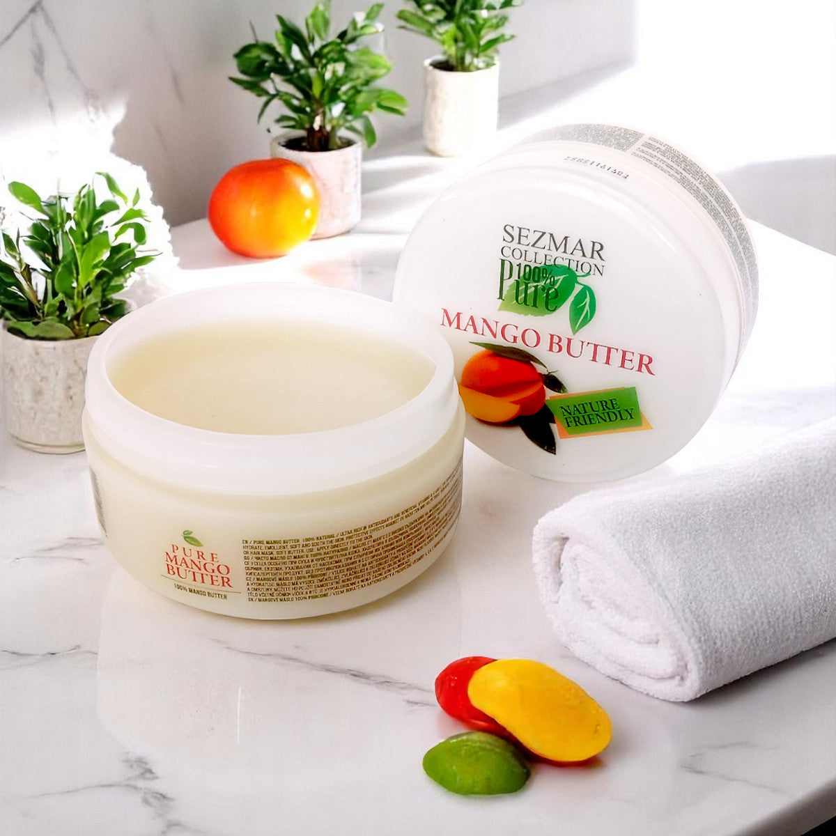 Pure mangoboter is rijk aan antioxidanten die vrije radicalen bestrijden, een belangrijke oorzaak van huidveroudering, en bevat ook vitamine A, C en D. Het is geschikt voor alle huidtypen, maar de gunstige effecten zijn vooral merkbaar op een droge en gevoelige huid. Het hydrateert, voedt, verzacht en heeft een kalmerende werking. Het beschermt tegen uv-straling en helpt bij de behandeling van huiduitslag, eczeem, insectenbeten, zonnebrand of bevriezing.
