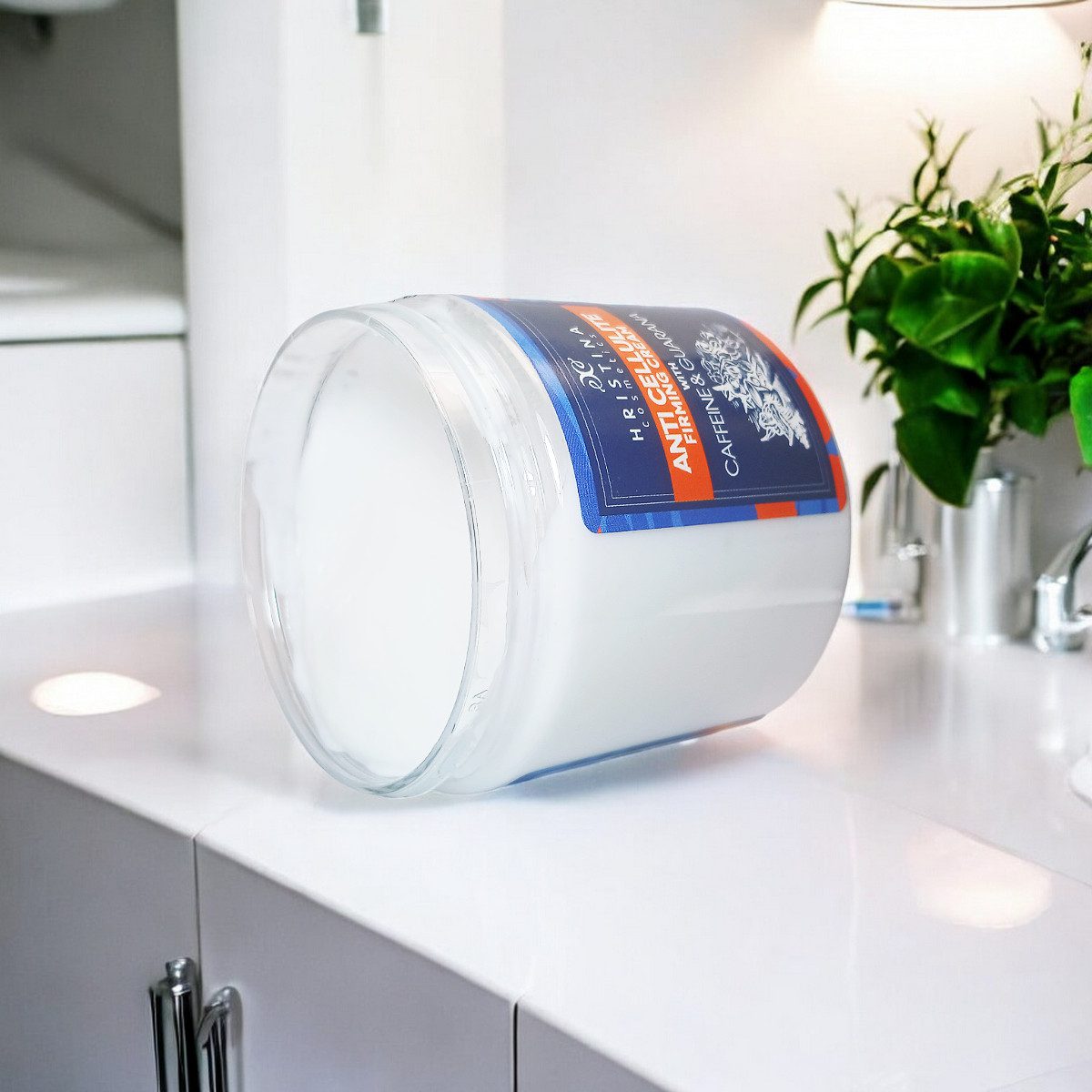 De anti-cellulitiscrème met cafeïne en guarana van Kozmetika Hristina is speciaal ontwikkeld om cellulitis te verminderen en de huidelasticiteit te verbeteren. Dankzij de krachtige werking van cafeïne en guarana-extract stimuleert de crème het huidverstevigingsproces. De rijke formule hydrateert de huid en maakt deze glad en stevig. Bij regelmatig gebruik verbetert het de huidtextuur en helpt het het silhouet te vormen.