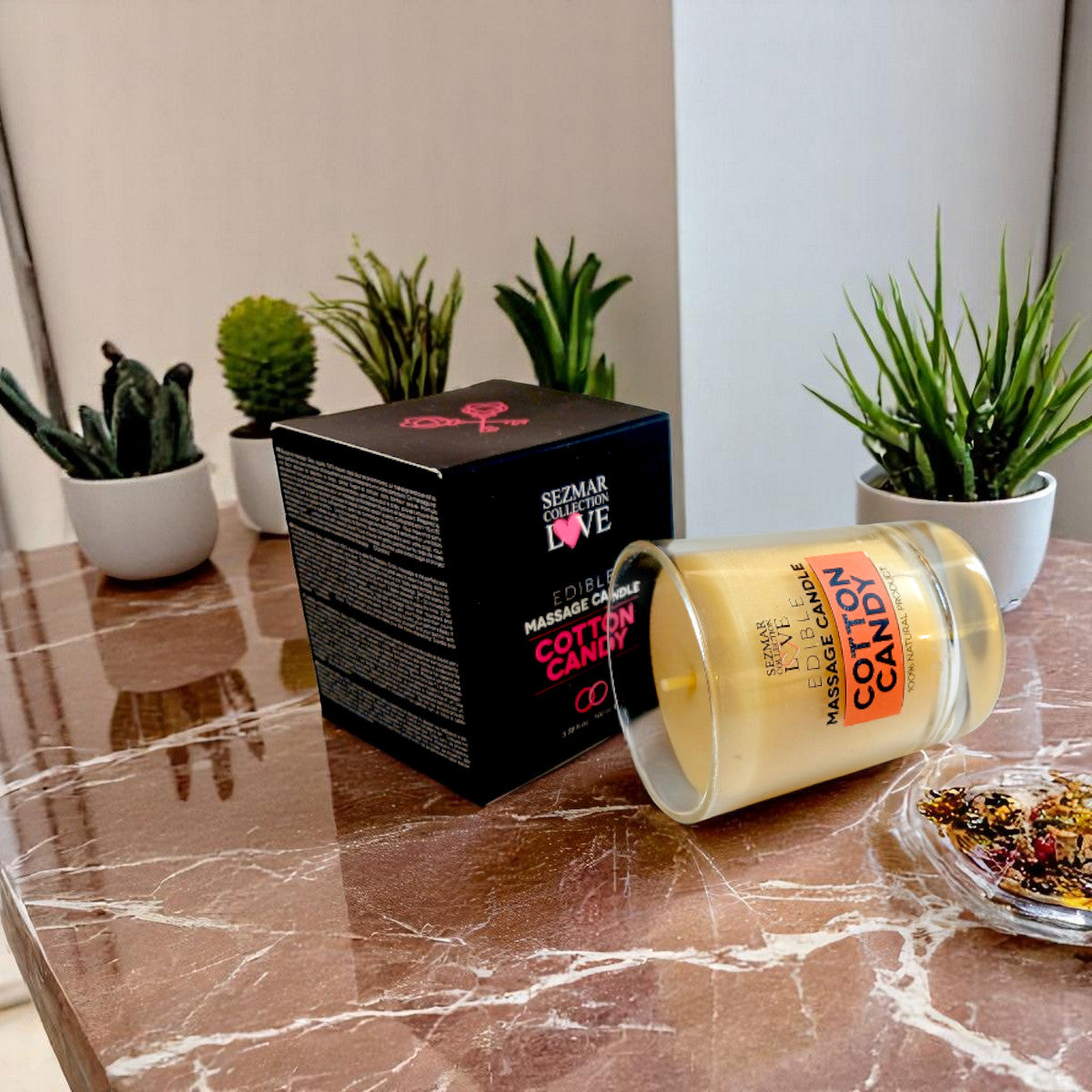 De Cotton Candy Massagekaars is ontworpen om van elke massage een onvergetelijke ervaring te maken. Met zijn 100% natuurlijke samenstelling en onweerstaanbare geur van suikerspin vult deze kaars niet alleen de kamer met een aangenaam aroma, maar hydrateert en voedt hij ook de huid, waardoor deze zacht en soepel wordt. Ideaal voor romantische momenten, het voegt extra warmte en sensualiteit toe aan elk liefdesspel. Geniet van ontspanning en genot met dit unieke product. Erotische massage is de perfecte manier om fysiek en emotioneel contact te maken met je partner. De massage is een geweldige manier om je lichaam te ontspannen en je seksuele geluk te stimuleren. De kaars is speciaal samengesteld en smelt op een lage, huidvriendelijke temperatuur. U kunt hem dus op het lichaam van uw partner gieten voor een diep hydraterende en verleidelijke warme massage. Steek de kaars aan en geniet van de geur die de kamer en je zintuigen vult. Het duurt 15 tot 30 minuten voordat de kaars voldoende is gesmolten om je massage te starten - hij zal ongetwijfeld een manier vinden om de tijd te doden! Eenmaal gesmolten, verandert de kaars in massageolie die de huid voedt en hydrateert . Doof de vlam, test de temperatuur van de olie door je vinger erin te dopen en je bent klaar om te spelen. Als de olie warm is, giet je een kleine hoeveelheid van de warme, hydraterende olie op het lichaam van je partner. Heb je nog nooit een massagekaars geprobeerd? Aarzel dan niet, steek de kaars snel aan en verwen jezelf en je partner met een rijke, warme massage... Geniet ervan! Belangrijkste voordelen:- Natuurlijke samenstelling: 100% natuurlijke ingrediënten die uw huid verzorgen.